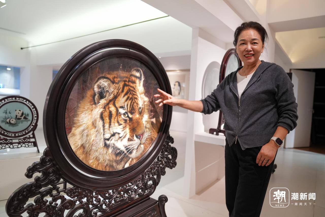 馆内一侧,收藏着融合李艳立异针法的双面绣座屏《山兽之君》,同款曾以220万元高价拍出,成为刺绣做品国际市场的价值标杆;而另一侧,正在李艳女儿昌妮从理下,湘绣不再是高不成攀的鸿篇巨制,转而翩然逛动于腰扇、喷鼻薰盒,甚至冰箱贴、车挂之上。